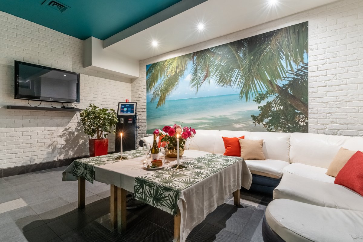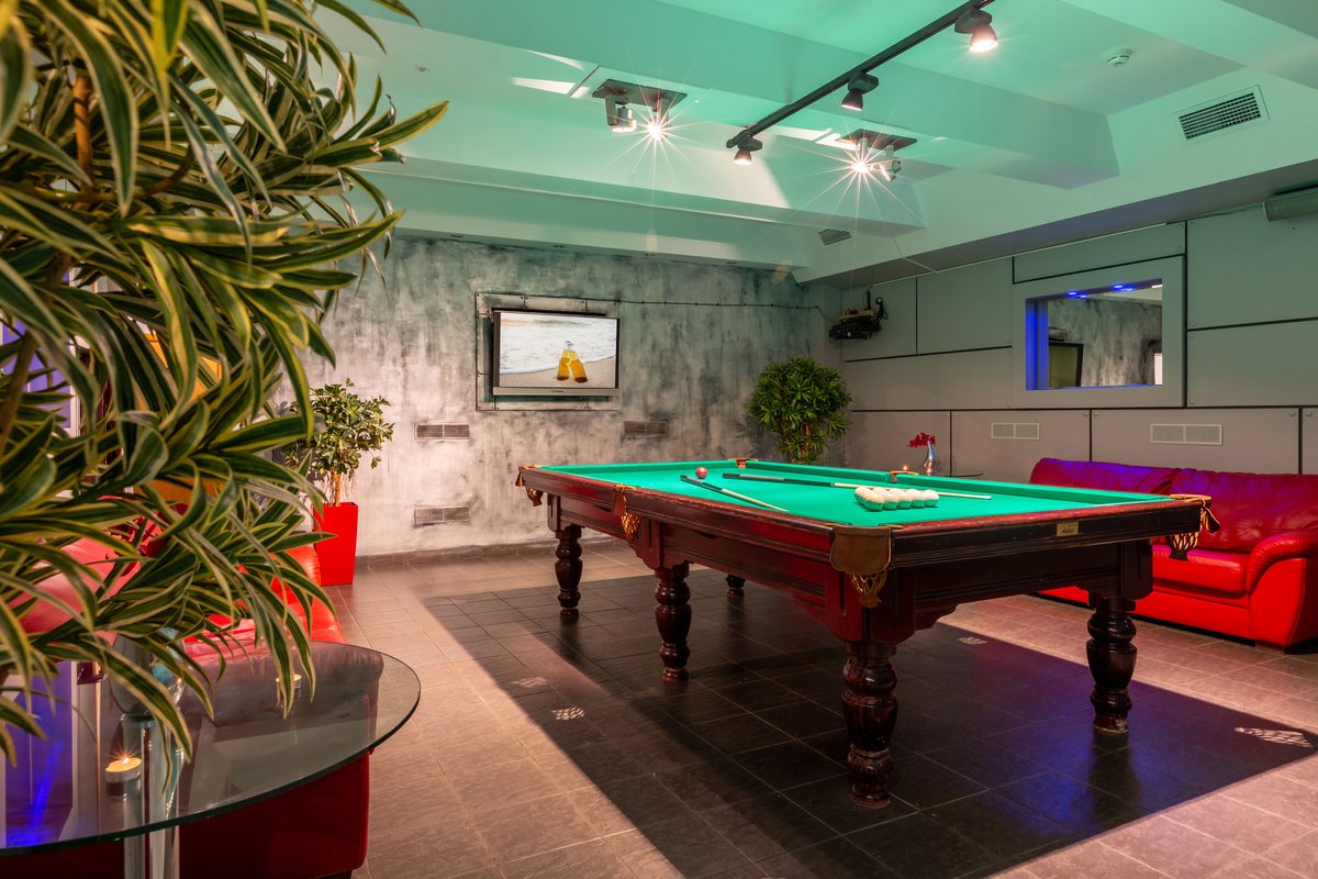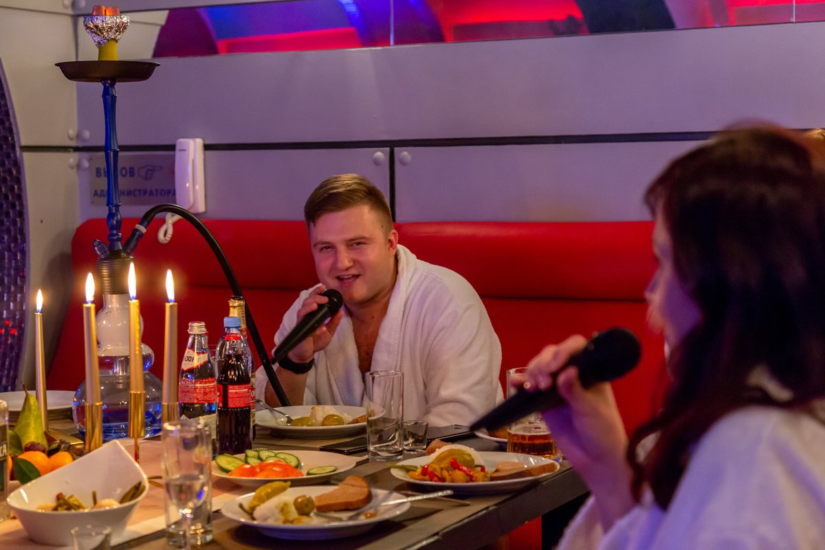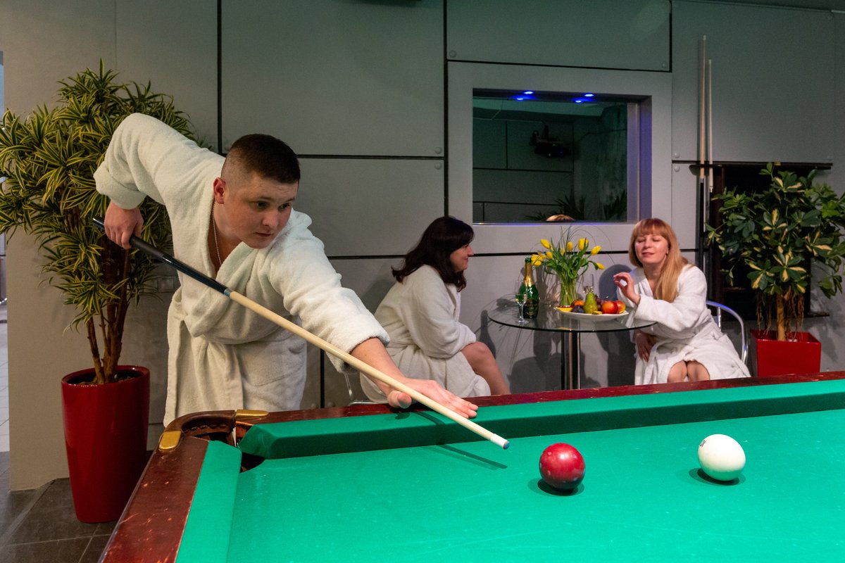 Да, может быть когда то это было модное место с оригинальным дизайном Подводная лодка.Сейчас же больше напоминает ржавый бункер.Ремонт в данном помещении делали очень давно,сейчас руководство не тратит своих сил и денег на поддержание сантехники,мебели,отделки помещений в хотя бы чистом безопасном состоянии. Из состава доходов (не малых исходя из общего ценника,к которому мы еще вернемся) не считают нужным также вести статью расходов на поддержание помещения в соответствии с санитарно-эпидемиологическими нормами,забудем про эстетику,уж хотя бы безопасности уделим внимание. Хотя как оно на бумаге неизвестно,но до факта проделанных работ дело явно не доходит. На общественных сайтах этот зал рекламирует как вмещающий до 40 человек,состоящий из трех помещений,с бильярдом,сауной,караоке,тв каналами и теплым бассейном. Но никто не уточняет что караоке и музыка не работают,но хоть шипящий канал с музыкой из подвала поймать можно, ладно. бильярд весь обшарпанный,как дерево так и сукно,с очень судя по состоянию давно купленным набором кий шары,нормально играть невозможно,больше по маяться имитируя игру. Да и свет в этой части видимо с этой целью приглашен до почти полной темноты (ночничок спасибо работает),чтобы не видно было прощального состояние заявленного развлечения.Проходим дальше грязные комнаты отдыха,совершенно грязная сауна с таким черным налетом, что даже подстилая свое полотенце находиться там брезгливо. Тут я тоже уточняю что сидеть лучше на своем принесенном полотенце,потому что попросив его там,мало того оно будет платным,так за взятую сумму денег еще и не отвечающим требованиям качества-чистоты, застиранное, в катушках, с выцветшим грязно синем,г рязно зеленым и грязно желтом цвете. А во всех нормативных документах ведется речь о договоре с прачечной, о тщательной стирке, ввиду большой проходимости человек. Руководству все-равно. Также уделим внимание расположения залов и комнаты персонала. Зал не закрывается, т.е. вы не остаетесь там исключительно своей компанией. Комната персонала находится в помещении первого зала,и они постоянно ходят курить, в туалет,за сапогами которые надо взять а потом в них пойти в магазинчик на заправку и обратно мимо вашего застолья.А если вы в другой комнате,опасаешься за оставленные вещи,потому что там периодически выходят совершенно разные люди,что они там делают не известно,но общий вид их не опрятный. Правила сауны составлены в ценовом диапазоне так,что еду