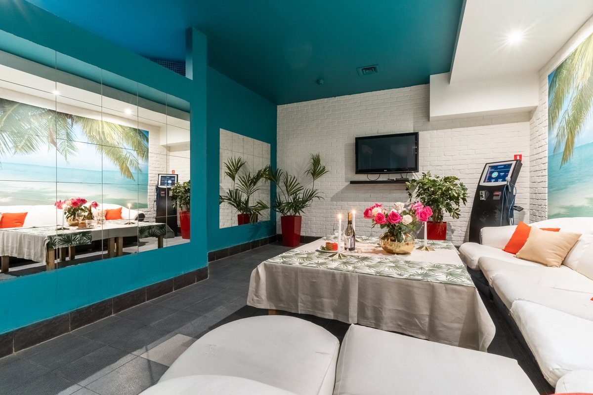 получается приходится заказывать у них. Цены на него выше ресторанных, половина из того что есть в прайсе, нет в наличии, почему -то это как раз самые доступные по деньгам вещи (типа пиццы).Но дорогое мясо есть, с его количеством конечно обвешивают, заказанные разные виды, сваливают в одну тарелку говорят это все .Продукты заветренные. Накрывают прям на грязный черный стол, без скатерти, кладут приборы. Это комната проходная, там люди сумки кладут, ходят в верхней одежде (при просмотре перед заказом сауны), Своей салфеткой проводишь, чернющая! Как подоконники в районе пром зоны. Ну и конечно кульминация всех рекламный страничек-теплый бассейн! Отдельная история как оказалось по факту. Теплый он только когда приходишь,далее температура стремительно падает. Просишь потеплее,выходит из той же каморки помятый человек,делает вид что что-то там делает,молча уходит.Проходит час,еще холоднее,зовешь администратора,Просишь потеплее,опять зовет человека.Смотрят вместе в одну точку на приборы,что-то крутят,он ей шепчет теплее не будет.А она вслух воспроизводит «Бассейн на 40 градусах прогрева стоит, почему жалуемся .И вообще вы предупреждали заранее что нужен теплый?» Отношение к клиенту все такое же потребительское. Скорее всего не выгодно долгое время поддерживать бассейн в теплом состоянии,дорогой выходит счет за электричество,а руководство как мы помним жадное.Ну или второй вариант ,сантехника и приборы на столько старые что не выдерживают столь долгого поддержания высокой температуры.А это уже не безопасно.Где -нибудь замкнет.выход на поверхность один,далеко от сауны и бассейна и открывающейся с единственной кнопки к администратора за закрытой дверью,захочешь не доберешься. В бассейне не вооруженным глазом видно коричневую грязь за дне.То ли кто-то в грядных сапогах ходил,то ли что-то другое. Дизайнерских арки сделаны из пенопласта,раньше было красиво,сейчас во многих местах он раскрошился,пошел грибок. Зеркала все тоже в грибке,некоторые разбиты. При этом цена в данном заведении весьма высокая,плюс добавляют не оговоренные заранее опции за обслуживание,за уборку. Итог: Качество оказываемых услуг не соответствуют заявленному. Санитарные нормы не соблюдены. Пожарная безопасность вызывает сомнение. И может быть я бы не стала писать этот отзыв если бы на следующее утро на коже не выступила сильная сыпь, и рвотные позывы сопровождали весь последующий день. А это уже инфекция, либо передозировка хлора в бассейне и это опасно для здоровья! Данное заведение требует большой проверки со стороны государственных служб.